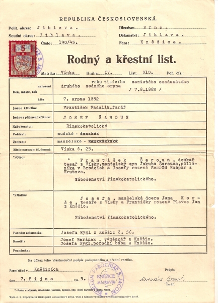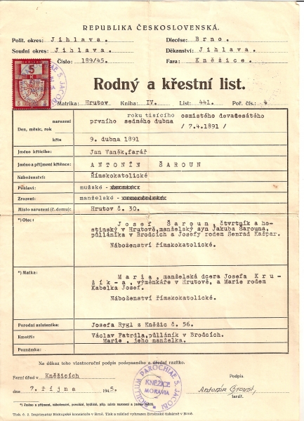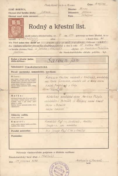 Křestní listy:Osobní stránka na adrese: sarounovi.stranky1.cz